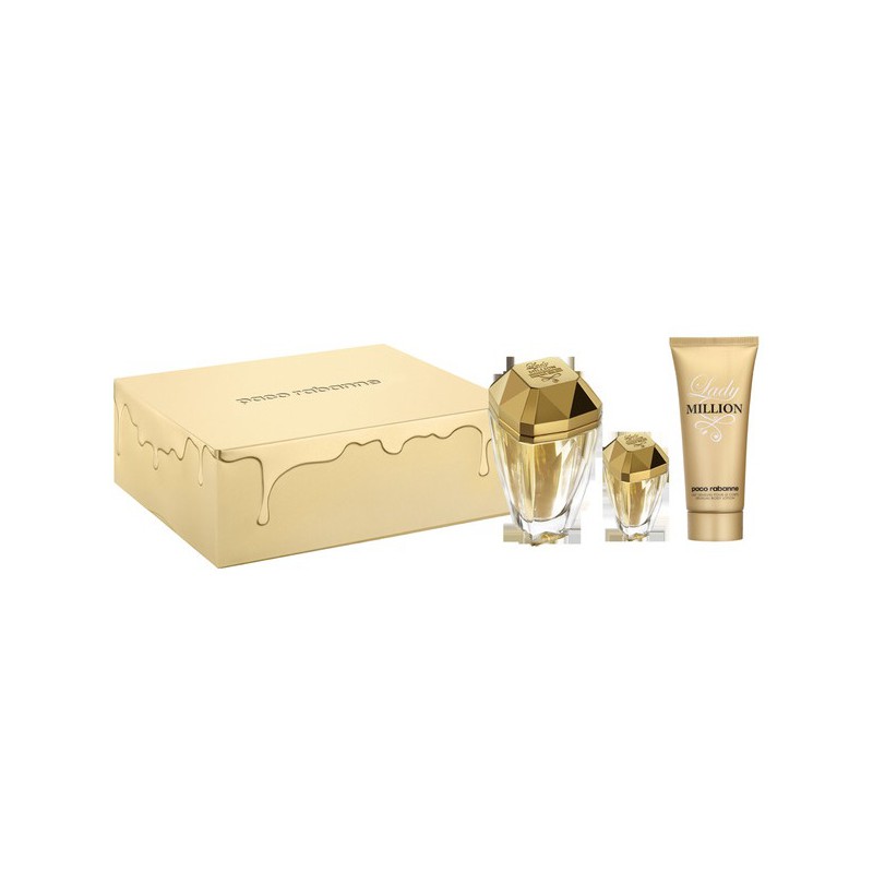 PACO RABANNE nos ofrece este producto: PACO RABANNE LAY MILLION EAU MY GOLD EAU DE TOILETTE 50ML VAPORIZADOR + BODY LOTION 100ML+MINI destinado para MUJER y cuya referencia es la 47033. Te encontramos el precio más barato en Intenet. El EAN correspondiente a este artículo es el 3349668533671
