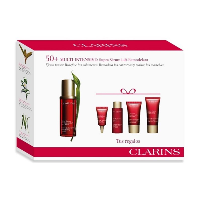 CLARINS nos ofrece este producto: CLARINS MULTI-INTENSIVE SUPRA SERUM 50ML + HAND CREAM 30ML + CONCENTRATED CRM.15ML + LOTION 10ML + CONCENTRATED EYE 3ML destinado para MUJER y cuya referencia es la 68115. Te encontramos el precio más barato en Intenet. El EAN correspondiente a este artículo es el 3380810324617